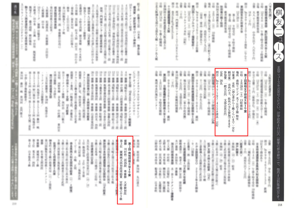 第3回南柏将棋大会の結果および第2回南柏女子将棋大会の開催予告が掲載されました。